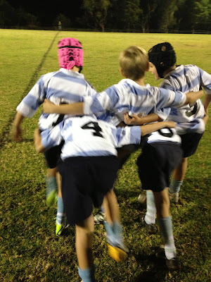 I unpacked the jerseys which were thoughtfully laundered by one of the Duck's Mums. I had to ask her if she had ironed them, they were so pristine. But she had just folded them straight from the dryer. The boys pulled them on, and many of them commented on their delicious smell. I said that I was pleased that they liked it, maybe falsely indication that I was responsible for such superior washing.